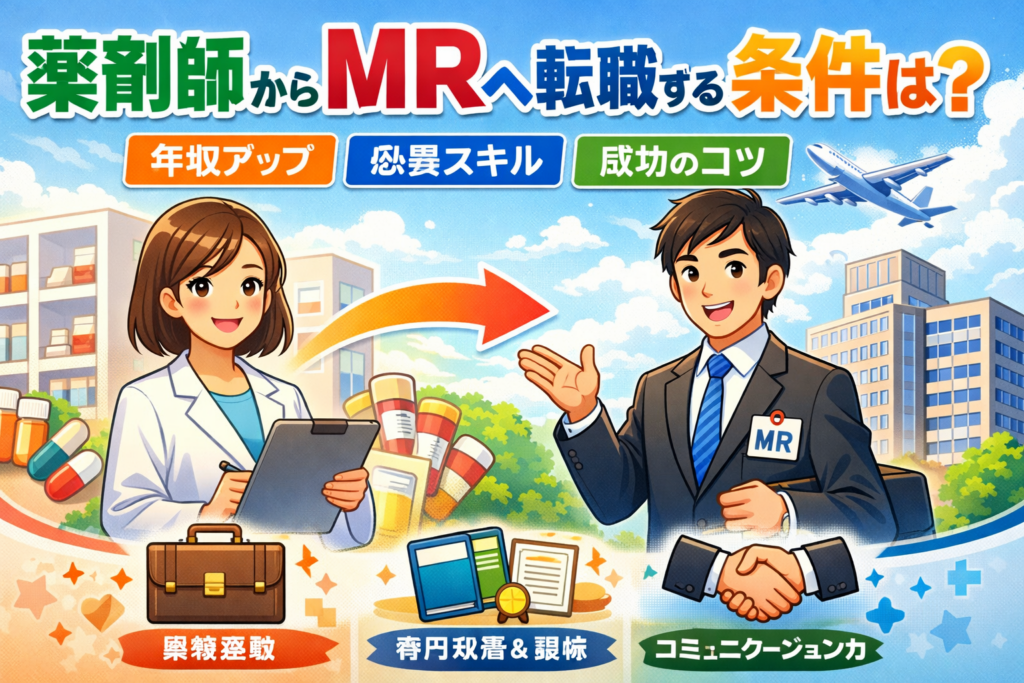 薬剤師からMRへ転職するための条件とは?年収・必要スキル・成功のコツを徹底解説【2026年最新】 薬剤師からMR(医薬情報担当者)への転職は、年収アップやキャリアの幅を広げたい方にとって有力な選択肢です。ただし、MRへの転職には営業経験や特有のスキ... -